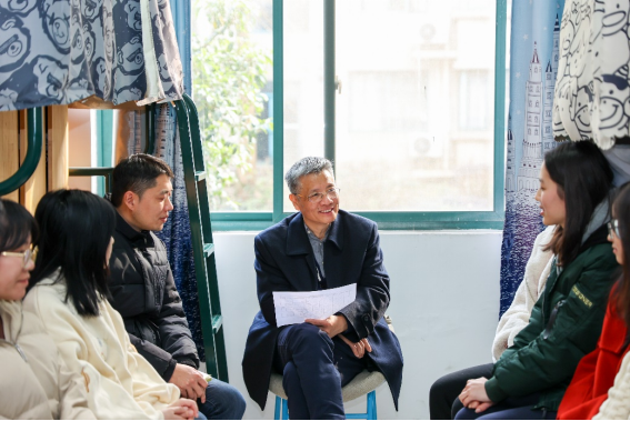“同学们,新年好!”宣勇书记热情地与同学们握手,致以亲切的问候。“最近大家复习得如何?”“你的家乡是自贡吗?我曾去过那里,当地特色灯会给我留下了很深的印象!”“学文征明书法是很有难度的,小楷强调稳定性。”“吉他弹唱很酷,有机会要上台展示自己。”宣书记与同学们围坐,从学习生活、兴趣爱好、家乡习俗等方面与同学们进行亲切的交谈。同学们踊跃向宣书记讲述着自己来到国产av