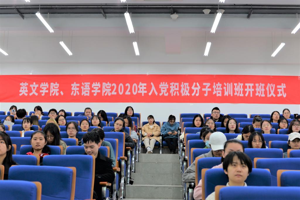 11月10日中午,英文学院、东语学院2020年入党积极分子培训班于融D108举行开班仪式。培训班旨在进一步加强入党积极分子对中国共产党基本理论知识的系统学习,提高其践行党建理论的水平和深度。英文学院党总支副书记郝菲菲老师、英文学院商务英语系学生党支部书记张伟俊老师出席,仪式由东语学院第二党支部书记郑周璇老师主持。