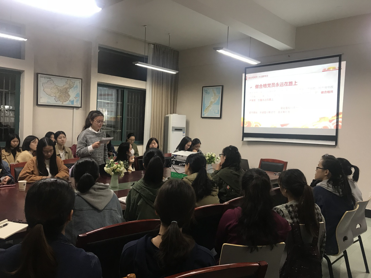 学生党员围绕学习党的十九大精神进行了热烈的讨论。15级英语师范1班徐运同学发表感言:“作为一名预备党员,不忘初心跟党走的理念要深深扎根在内心。思想上要进一步向党靠拢,好好学习,为实现中华民族伟大复兴贡献力量”。16级英语5班的沈清清同学也表示,作为学生党员要严格要求自己,从一点一滴小事做起,多为班级、国产av