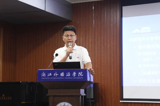 近日,英文学院在博文堂举行了21和22级学生人才培养进程说明会,院长邢富坤,英语系主任黄艳春、商务英语系主任陆海霞、翻译系主任王璟,教学秘书俞海燕、教务秘书虞峰峰,两个年级全体在校学生参加,副院长陶伟主持。