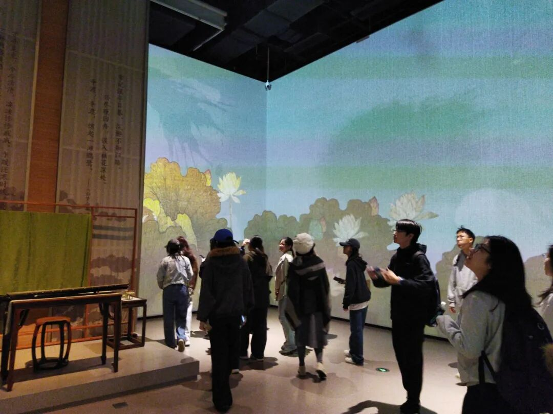 每一个文学故事都让同学们驻足,或低头记录,或轻声交流,指尖偶尔掠过展墙上的诗句,仿佛与百年前的文人墨客完成了一场跨越时空的对话。