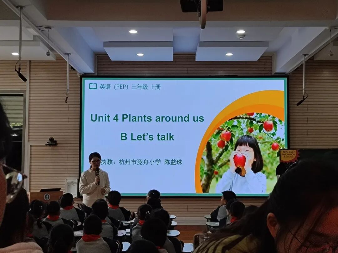杭州市竞舟小学教师陈益珠的对话课通过视频、图片导入“植物与生活”的关联,以简单任务让学生熟悉“人和植物”的日常互动,再通过角色扮演内化“爱护植物”的情感教育。