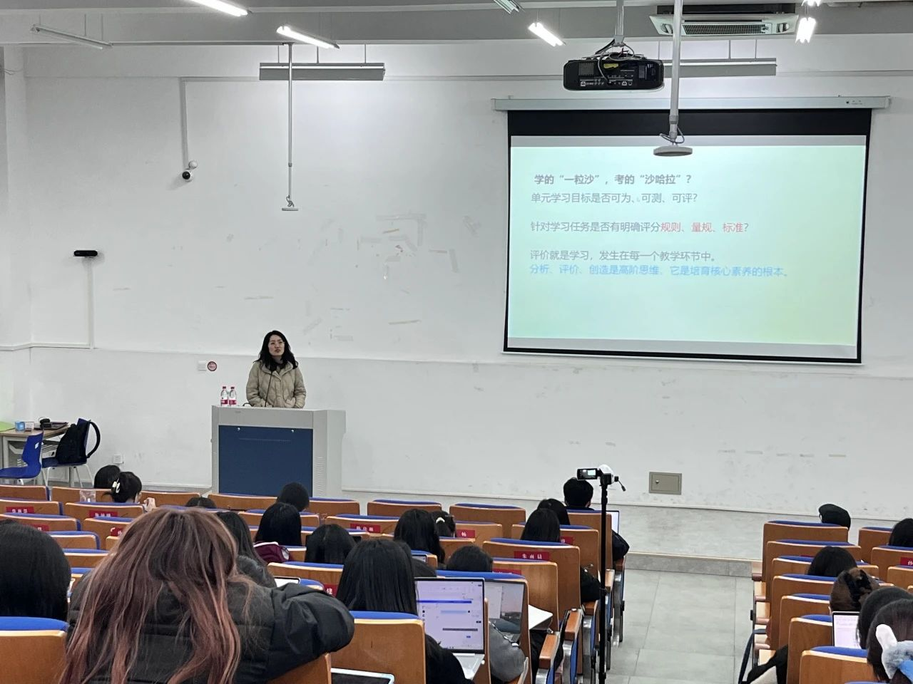 为进一步提升22级英语师范学生的教学设计能力,近日,英文学院举办了“基于‘教-学-评’一致性的初中英语单元整体教学实践路径”专题讲座,由余杭区海辰中学秦丽静老师主讲,22级全体英语师范生积极参与。
