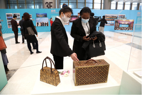 本次专题宣介会的主会场设在杭州国际博览中心,会场内设有非遗展区,展区内陈列了包含东阳竹编、越窑青瓷、杭州刺绣、青田石雕等展品,外宾们表现出了浓厚的兴趣。 国产av