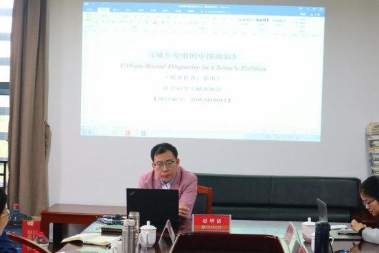 国家社科基金中华学术外译项目负责人赵增韬副教授着重介绍了译著《城乡差别的中国政治》的基本内容、完成情况、遇到的困难与问题以及下一步的目标。
