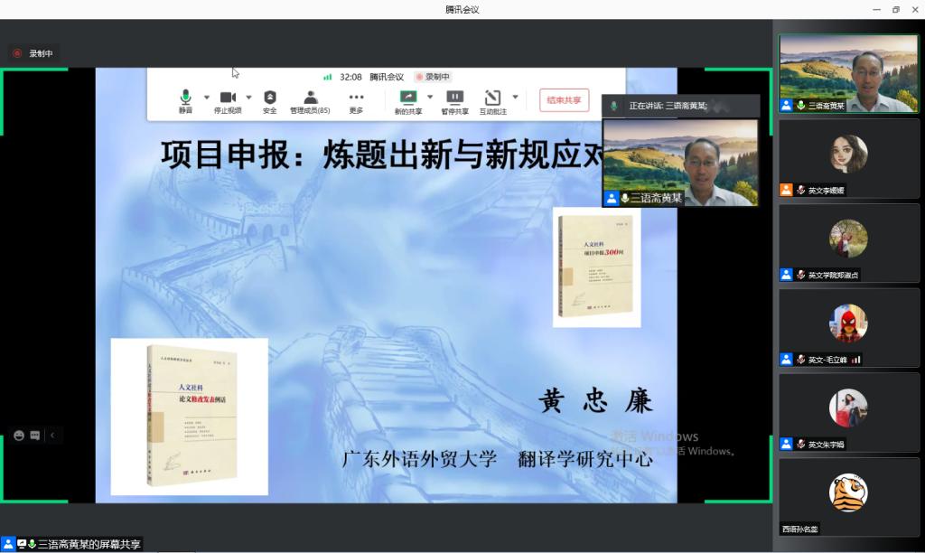 博达论坛第722讲,以“项目申报:提炼出新与新规应对”为题做线上讲座,副校长柴改英以及来自全校近100位教师参加讲座。