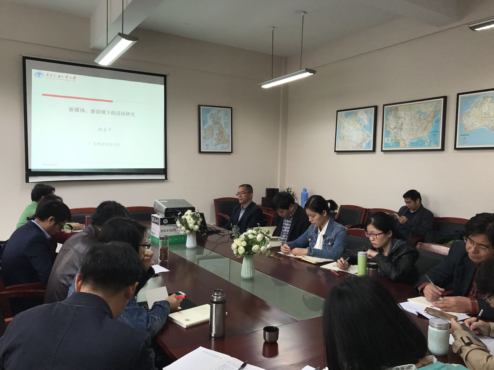 主讲题为“新媒体、新语境下的话语研究”的讲座。