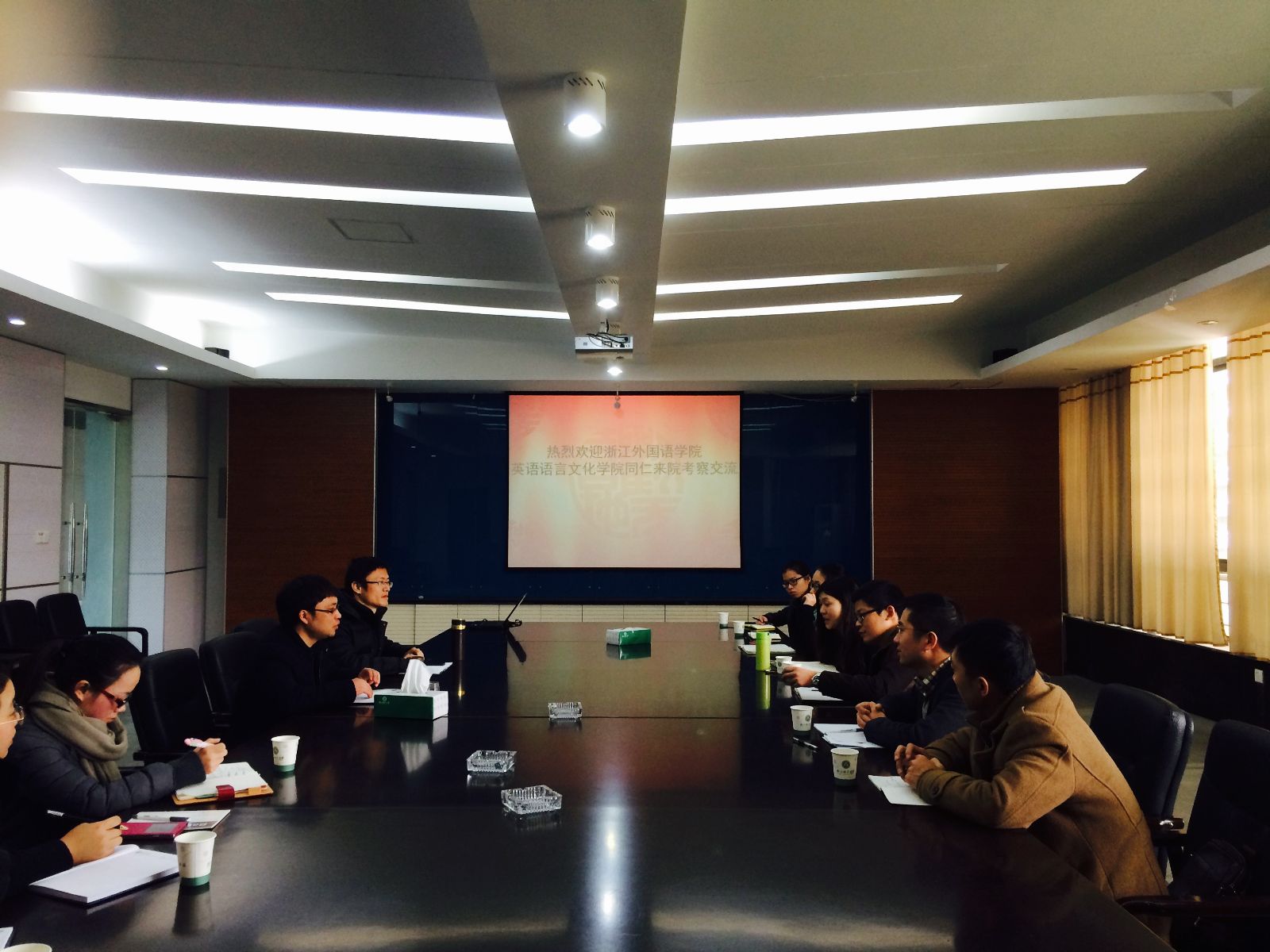兄弟学院负责人详细介绍了学院全员育人工作的举措与经验,以及在打造榜样文化、梦想文化、公寓文化以及服务文化方面的做法和新思路。浙师大完善成熟的学生工作体制,充满人文关怀的学院建设,使英文学院一行在如何打造学院特色文化品牌,提高学生全面素质,提升学院核心竞争力等方面获益良多。