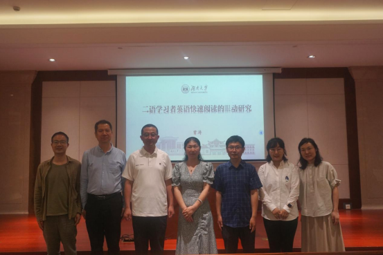 6月4日晚,湖南大学博士生导师曾涛教授应邀参加博达论坛第908讲暨英文同文讲坛第65讲,以“二语学习者英语快速阅读的眼动研究”为题作专题讲座。讲座由语言智能学科负责人田启林教授主持,英文学院院长邢富坤、语言智能学科团队成员、应用外语学院教师及相关专业学生等60余人参加了讲座。