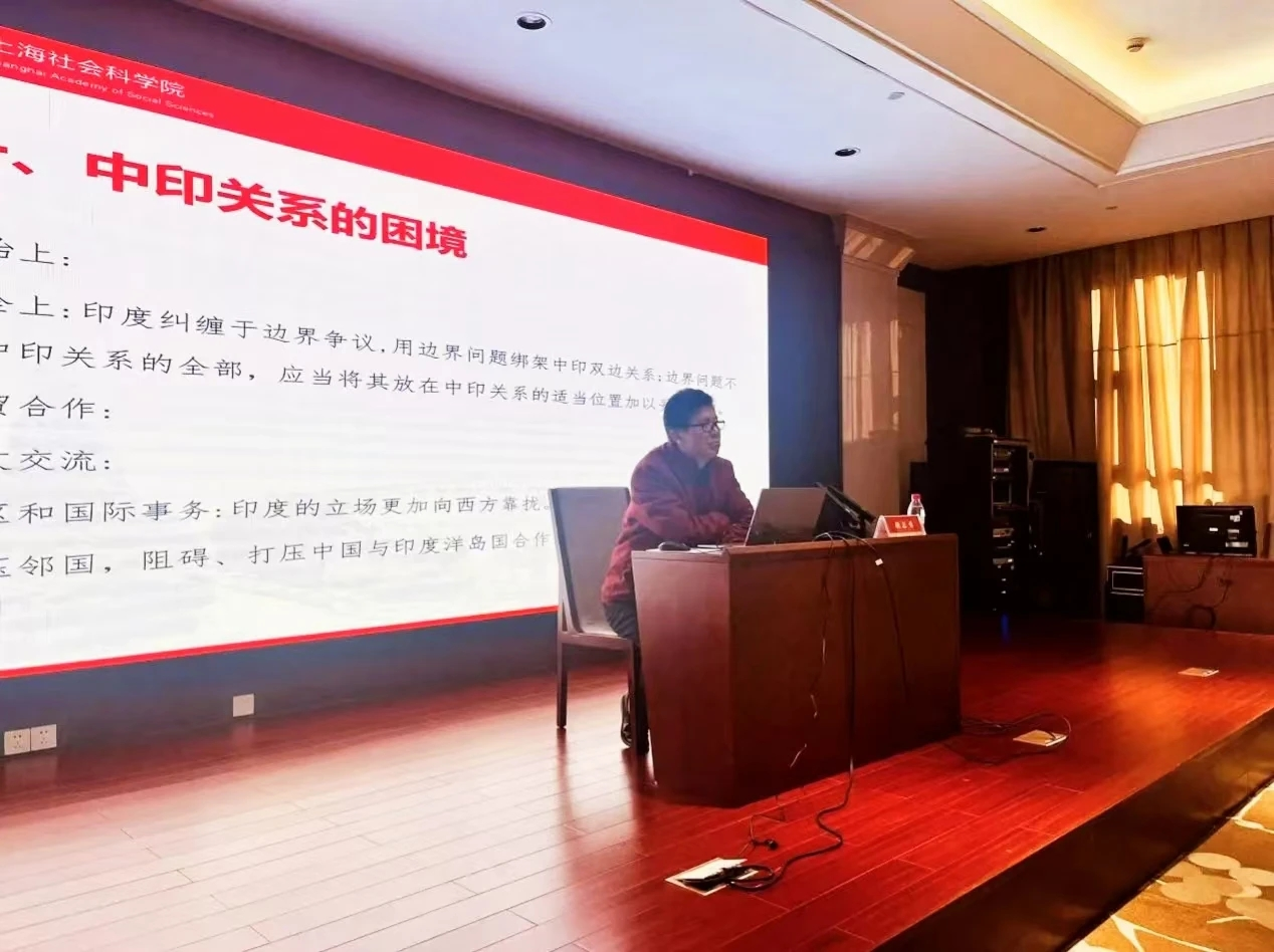 11月29日下午,英文学院特聘教授、上海社会科学院国际问题研究所研究员、全国“中-南亚研究联盟” 理事长胡志勇教授为英文学院师生作题为“中印关系发展的困境及其影响”的讲座。讲座由区域国别商务英语系科研主管赵歆老师主持,英文学院特聘教授王冲、学术副院长盛煜冰、青年教师章珏博士、周影博士出席了此次讲座。