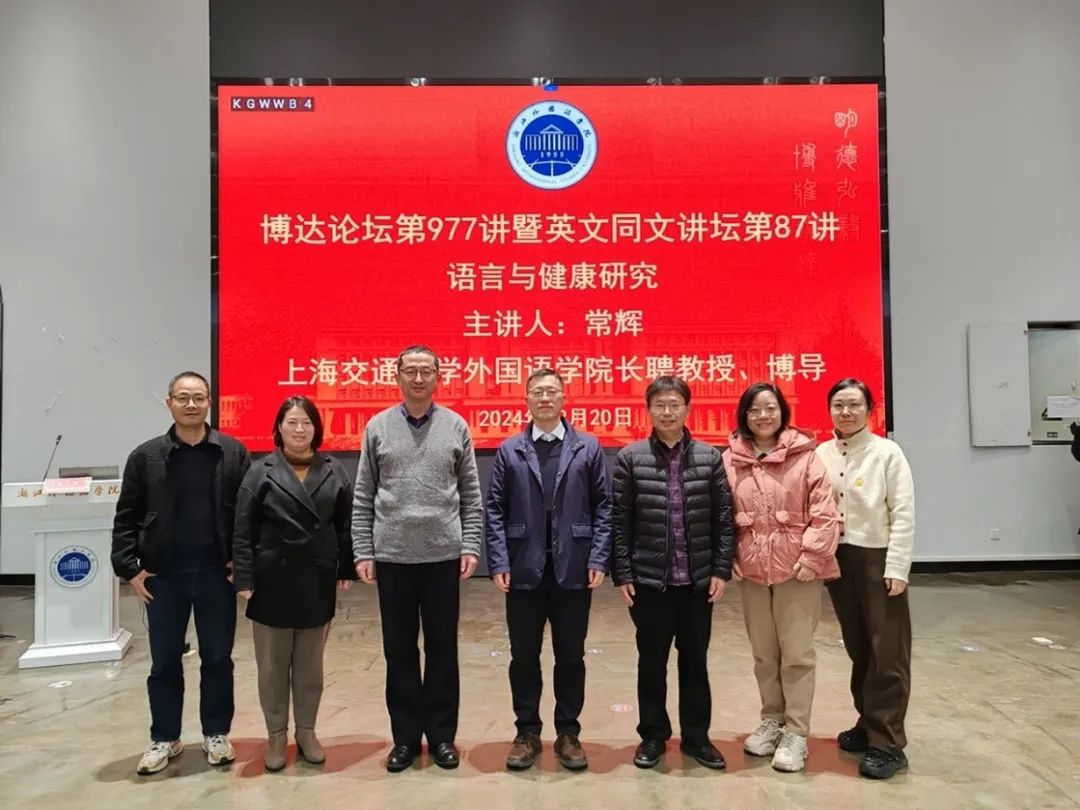 近日,上海交通大学研究生院副院长常辉教授应邀参加浙外博达论坛第977讲暨英文同文讲坛第86讲,以“语言与健康研究”为题作专题讲座,英文学院院长邢富坤主持,英文学院、应外学院等学院的200余名师生参加。