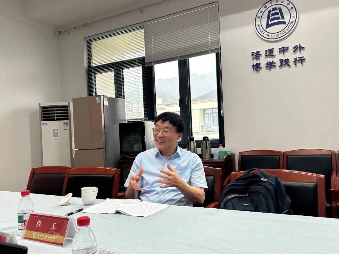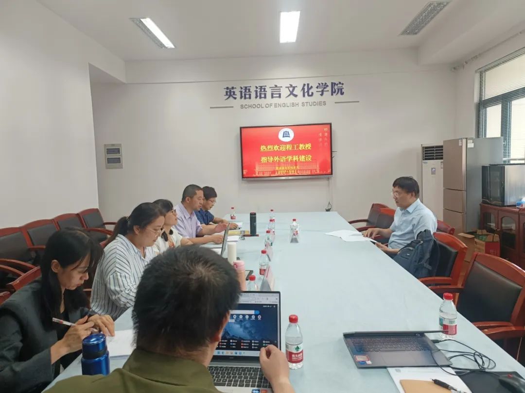 6月24日,浙江大学博士生导师、著名语言学专家程工教授受邀到英文学院指导外语学科建设工作,并就外国语言文学一级学科硕士点申报工作提出宝贵建议。英文学院院长邢富坤、副院长郑淑贞,语言智能学科团队负责人田启林及语言科学系主管和教师代表参加此次交流活动。