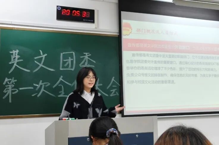委员会,并通过组织架构图的展示,帮助大一新生快速建立对英文学院团委的整体认知,为后续工作奠定了良好基础。