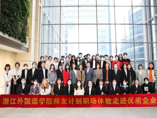 学生处副处长郭晓笑、英文学院党总支副书记张豫晋、英语系主任黄艳春、商务英语系主任陆海霞、商务英语系教师赵歆及该系48名大三学生赴浙江横店进出口有限公司参观交流。