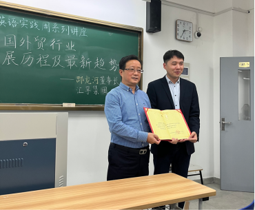 11月3日下午,英文学院商务英语系特别邀请了汇孚集团董事长邵龙河,来校开展主题为“我国外贸行业发展历程及最新趋势”的实践讲座。英文学院毛立峰书记、商务英语系系主任陆海霞老师、副系主任郭安琪老师、赵歆老师,以及商务英语系全体20级学生出席了此次讲座。