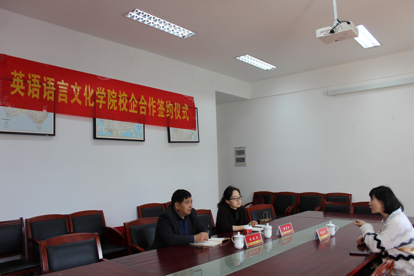 与及岸教育和培兰教育的合作签约仪式在融A407成功举行。英文学院郝菲菲副书记、朱武汉副院长、及岸教育和培兰教育负责人曾淑萍老师参加了会谈。