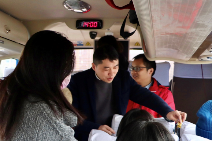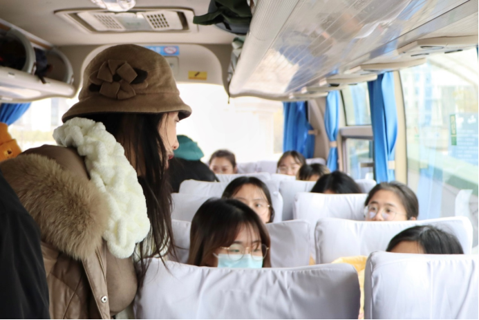 24日中午,英文学院54名考生乘上学院准备的送考大巴前往考点,学院领导班子、毕业班班主任、学生辅导员以及学生代表来到现场为考生们加油助威。