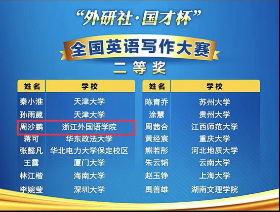 周沙鹏同学奋力拼搏,过关斩将,与来自复旦大学、天津大学、厦门大学等高校的选手同台竞技,喜获全国二等奖。
