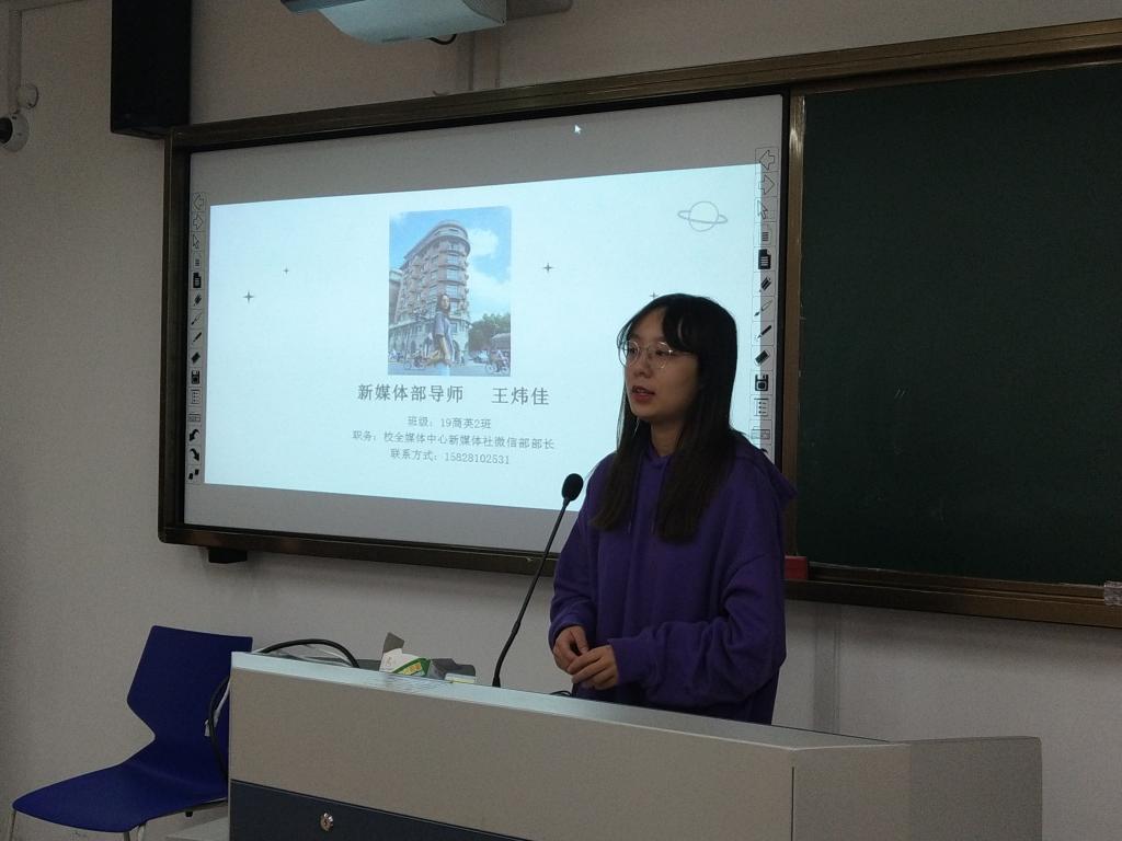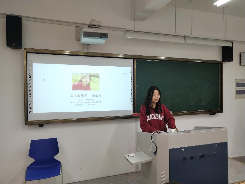 本学年,国产av特聘校全媒体记者团的白若彬、黄暖,视觉传达中心的黄国秦、袁敏君以及新媒体社的王炜佳、季秦亦等同学为各部门进行指导。