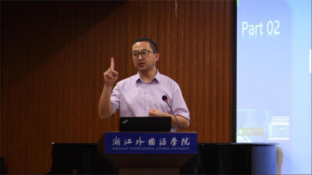 院长邢富坤详细介绍了学院的专业优势、师资力量、育人特色和成果等内容。他重点强调了英语学科在人工智能冲击下的发展方向,给家长们吃了一颗定心丸;用鲜活的实例——一个毕业生的发展路径和一个毕业班的就业去向,给家长们打了一剂强心针。他期望全体新生能够以图书馆为伴,在书香中成长;以运动场为友,强健体魄;以校园为家,成长成才。