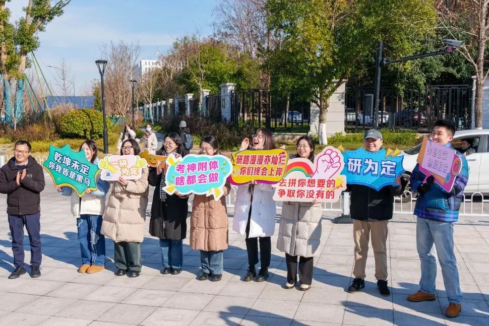 12月22日下午,英文学院组织“暖心专车”护送考生前往考场,学院领导班子、专任教师、学工办老师以及学生代表来到现场,为考生们送上祝福和鼓励,护送考生前往梦想道路上的“最后一程”!