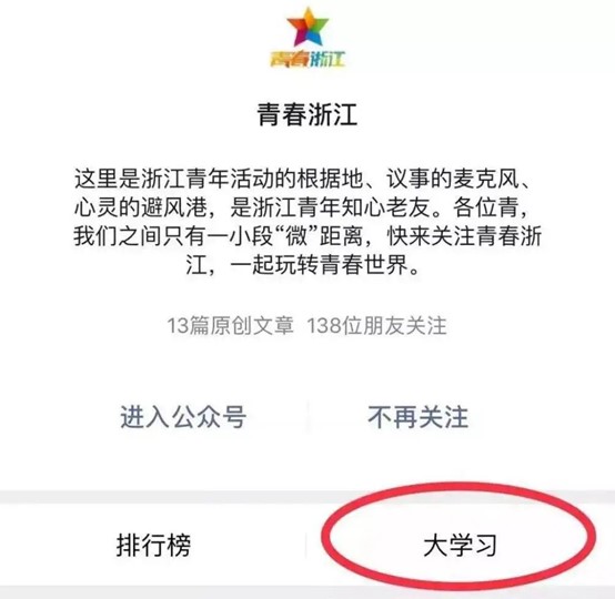 步骤一:关注公众号“青春浙江”