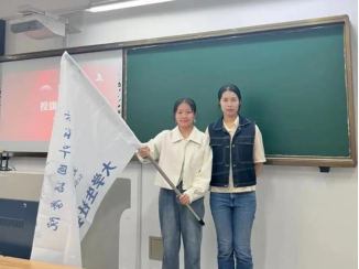 最后,杨沁儿为实践团队领队代表进行授旗。
