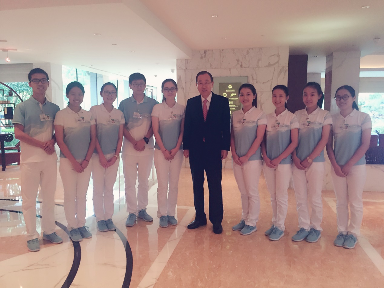 服务期间,我也感受到了国外友人的热情,特别是巴西的外宾,他们很喜欢结交朋友,对待他人非常热情。有一个巴西外宾就对我说自己非常喜欢中国,并和我交流了起来。我在谈话中感受到了这个足球王国土地上的热情和魅力。虽然每天早上西餐厅的工作都要求我们起的非常早,但是早上能看到如此可爱的外宾也能从中提高自己的能力也是值得的。正所谓“早起的鸟儿有虫吃”。我也在西餐厅服务期间见到了潘基文秘书长,秘书长真的非常亲切友好,举手投足之间都散发着友善。