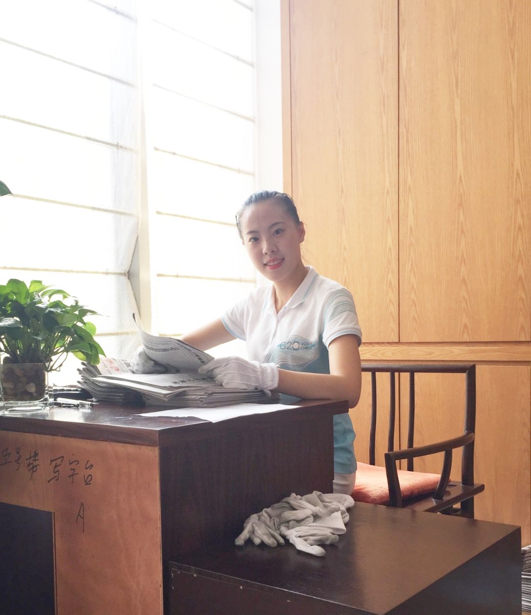 9月1日,我们组的小青荷们正式上岗服务。在西湖国宾馆,我主要负责前厅的接待工作,也曾为入住的宾客们叠报纸,值得一提的是,我们有幸为习大大叠了报纸,小心翼翼,谨谨慎慎,也与中国外交部部长、外交部副部长、商务部部长、国家发改委主任、浙江省委书记、副省长、浙江省警卫局副局长等知名人物展开了眼神与言语的交流,倍受鼓舞。非常感谢在国宾馆主管志愿者活动的的楼姐与冯经理为我们提供的耐心又贴心的帮助。