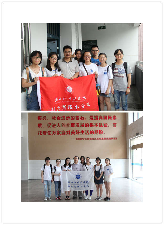 发展方向相连与社会走向挂钩的课——“众说高考英语降分背景下英语教育改革初探”,希望能通过把自己置身于社会反映教育第一线的心声为教育改革尽自己的绵薄之力。在实践地点的择选上,作为教育强市,又毗邻杭州的富阳市当之无愧成为了我们今年暑期社会实践的调研基地。