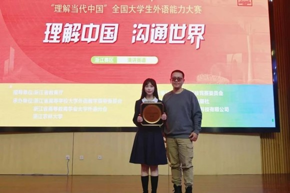 11月2日至3日,2024年第二届“外研社·国才杯”“理解当代中国”全国大学生外语能力大赛英语组演讲赛道浙江赛区决赛暨浙江省大学生外语能力大赛英语演讲赛道决赛在浙江农林大学东湖校区成功举办。在楼翎老师和夏国建老师的指导下,22级翻译1班的张嘉怡以非凡的演讲技巧在众多选手中脱颖而出,最终杀入Grand Final六人辩论对决,获得特等奖季军,并成功晋级国赛。