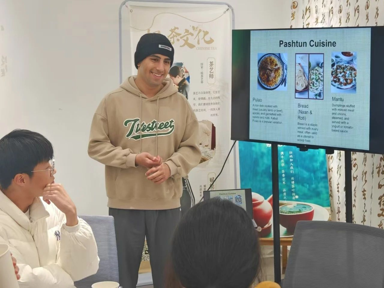 紧接着,Adil又介绍了巴基斯坦的特色美食,比如Pulao,Bread,Mantu等,并且详细介绍了制作的过程。这些美食引起了在场同学们的好奇和浓厚的兴趣。