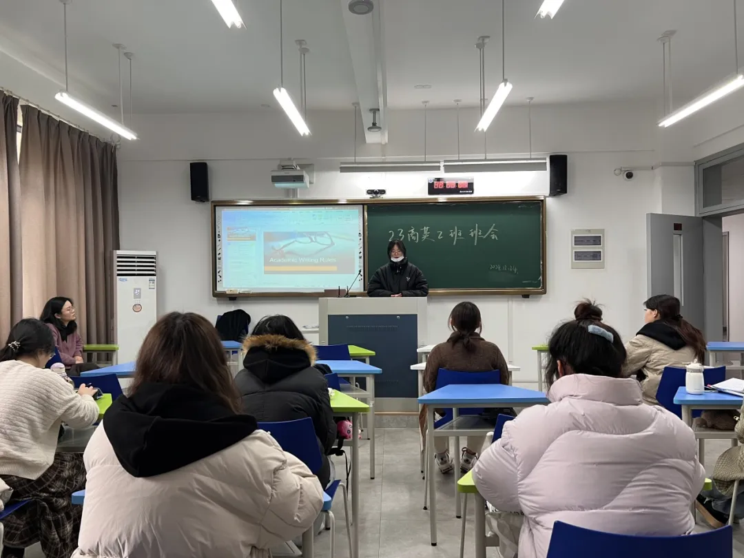 23商英2班班主任盛煜冰鼓励大家要始终保持对学习的热情,不断在专业领域进行深耕,她希望大家能认真准备即将到来的期末考试,以充足的准备去面对每一次挑战。她表示,学院非常重视每一位学生的学业和职业发展规划,会为学生提供全面的支持和指导,鼓励大家充分利用各类资源。