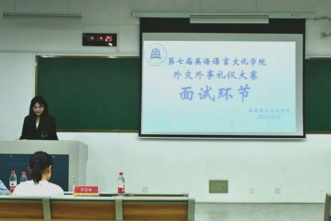4月17日,英文学院第七届外交外事礼仪大赛院级选拔赛在融B207落下帷幕。本次选拔赛分为初赛笔试和决赛面试两个环节,参赛选手以精神饱满的面貌、一丝不苟的态度,就时政热点、国际关系、外交外事等领域的内容展开竞答。