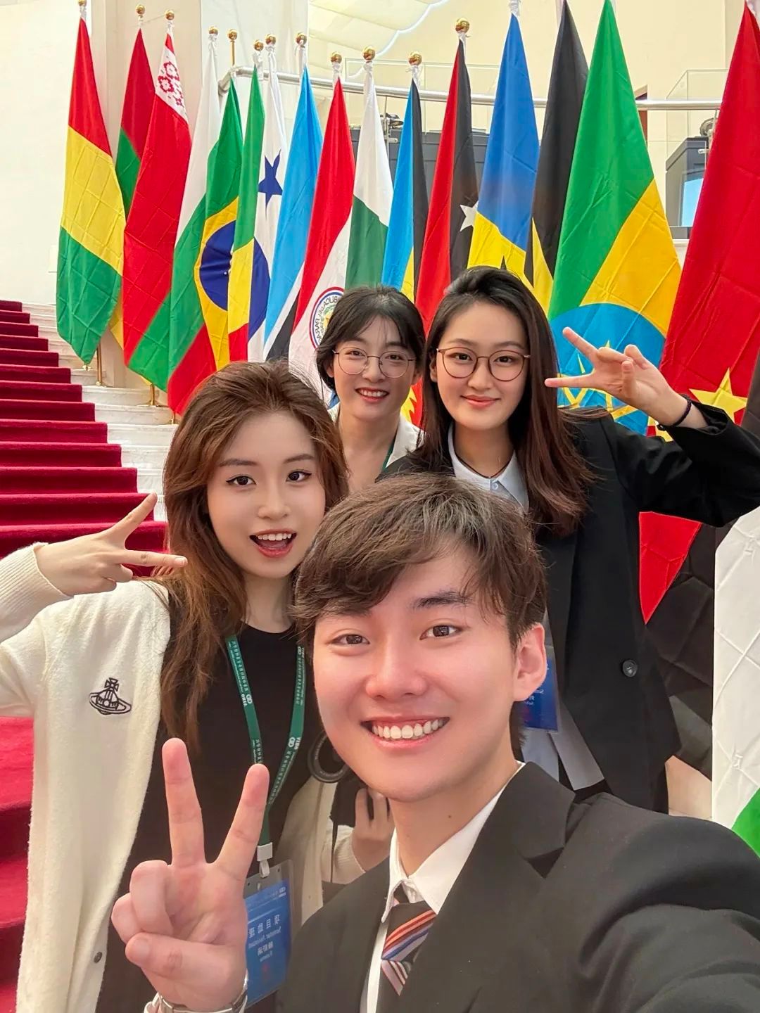 近日,英文学院22英语6班吴奇、刘宇彤,22翻译3班滕舒涵同学入选商务部国际官员研修项目,前往北京,开启了为期18天的实习。活动期间,他们接待大使、发言人,筹备会议、组织课堂、陪同参访,以专业、自信、热情的姿态充分展示了英文学子的风采!