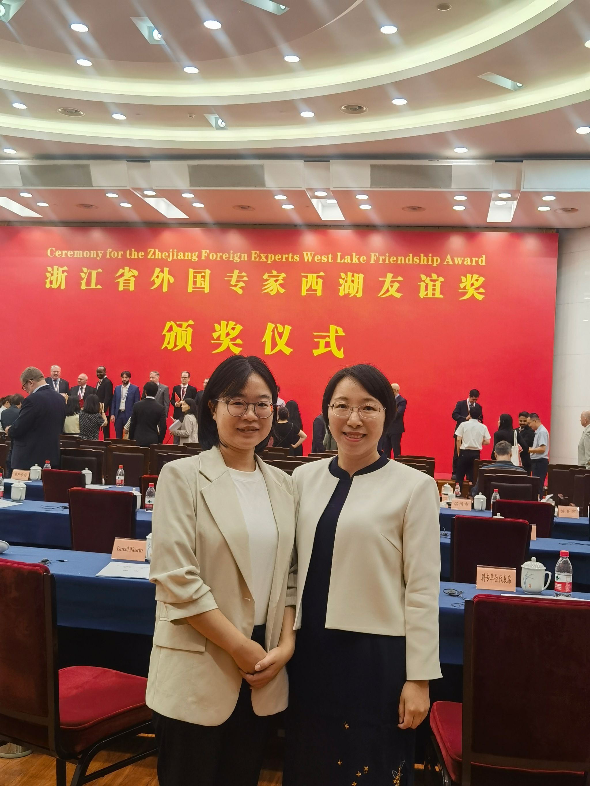据悉,浙江省外国专家西湖友谊奖颁奖大会于今年7月在杭州举行,王晓露、游婷两位教师凭借专业的同声传译服务,为大会中外嘉宾搭建起高效的“语言桥梁”,为大会顺利举行提供了有力保障。
