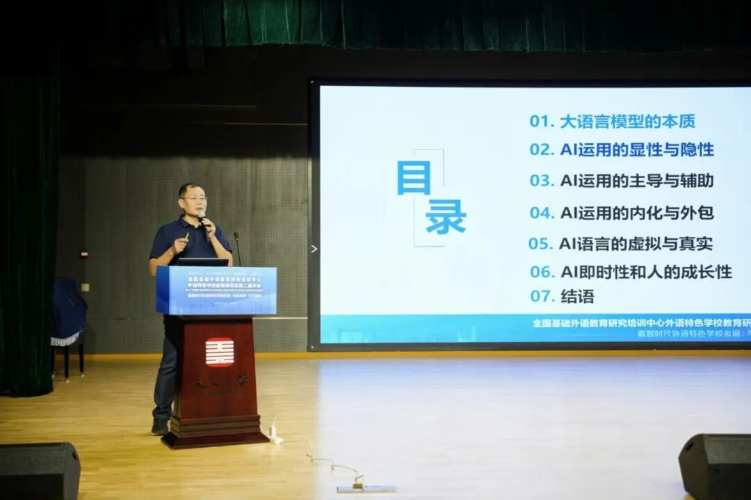基于此,他分享了AI技术在语法教学、词汇学习等方面的具体应用示例,并指出在使用AI生成的内容时需要注意甄别其准确性和适用性。他强调,教育的核心目标是促进学生的全面发展,而非单纯的技术应用,在数字化教育的大背景下,我们应更加注重教育的人文关怀,确保教育活动能够真正促进人的成长与发展。