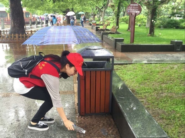 同学们身穿红色志愿者服,在西湖边捡拾垃圾,倡导绿色出行,进行道路引导,接受游人咨询,为来自国内外游客提供帮助。在烟雨朦胧的西湖,红色的志愿者服成了一道别样的风景线。