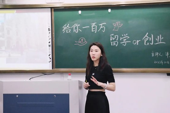 “给你一百万,你是选择留学还是创业”就业创业经验分享会由2007届实用英语专业校友、华通留学温州公司经理泮慧担任主讲。她围绕个人留学经历、创业起伏,激励同学们勇于创业,在创业中不断思变、借力、坚持,深耕公司业务领域,做到极致的服务。她就创业经历中的得与失为学弟学妹们答疑解惑,用自己的人生规划和创业经验,向英院学子展示了另一番精彩人生。