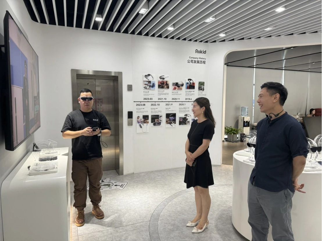 党委书记田俊杰带队走访AR领域头部企业杭州灵伴科技有限公司(Rokid总部)并看望公司公共事务总监、英文学院2008届校友许诩。英文学院党委副书记欧万彬、学工办负责人顾蒙、“寻迹校友”专项调研实践项目组学生负责人等一同参加走访看望活动。