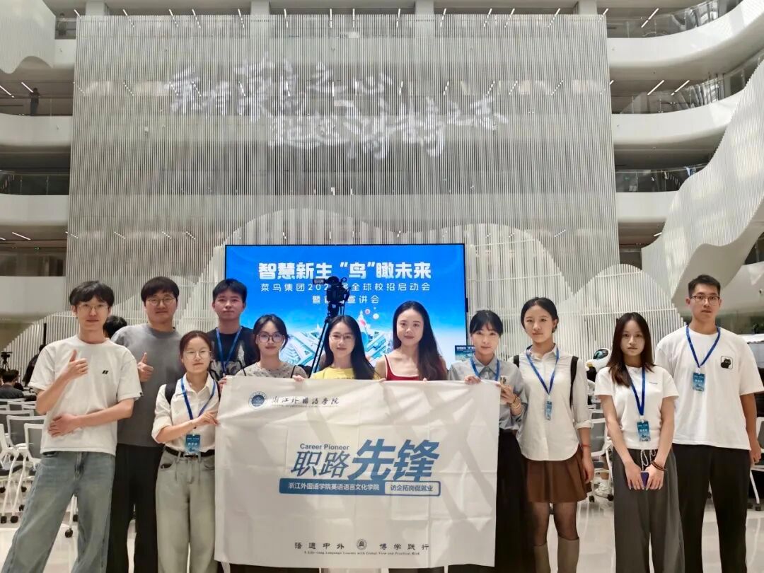 为深入推进校企合作,拓宽学生实习与就业渠道,实现人才供需精准对接,9月16日,正值菜鸟集团2026届全球校招启动会暨首场宣讲会举办之际,英文学院组织10名2026届应届生前往菜鸟集团总部参与应聘,同步开展校招面试及校友走访活动。