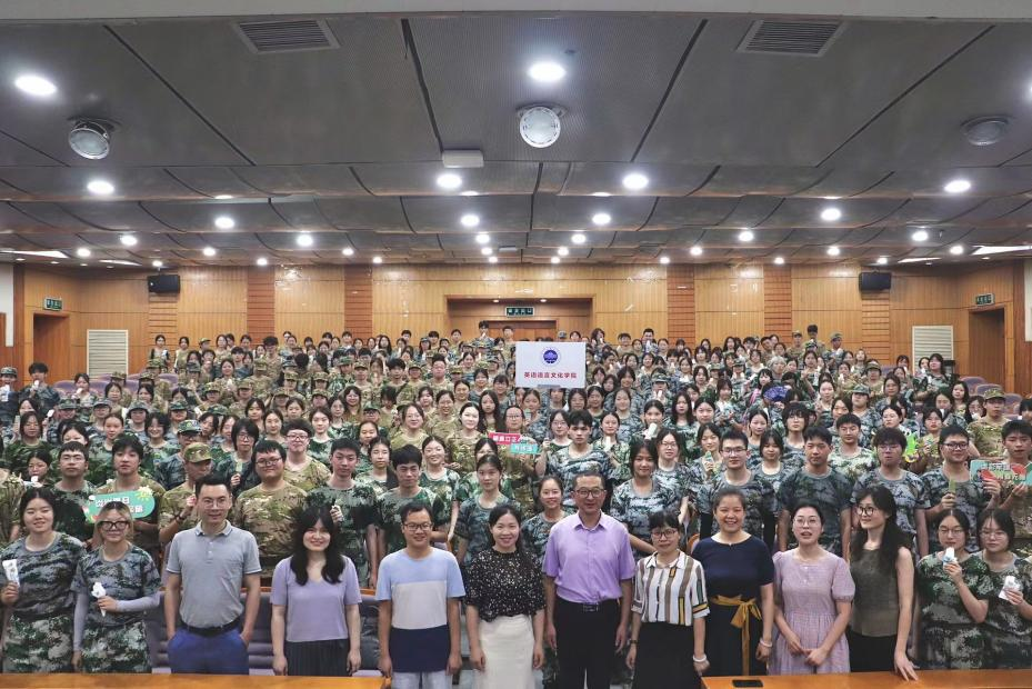 7月17日上午,英文学院院长邢富坤,党总支书记田俊杰等学院党政班子,各系主任以及教工党支部书记一行慰问正在军训的2022级学生。