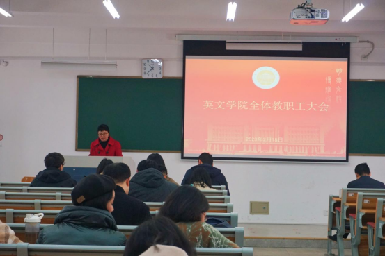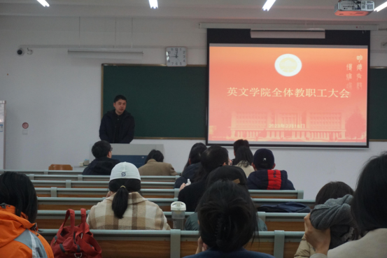 召开全体教职工大会。会议由学院党总支书记毛立峰主持,学院全体教职工共同参与。