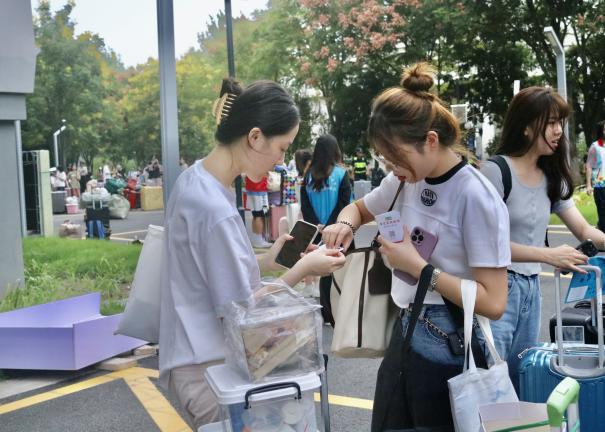 他们热情地接过新生们的行李箱
