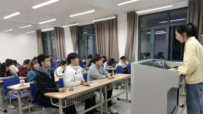 团委副书记徐子晗讲授“勇担重任 奉献青春”主题团课。结合习近平总书记的重要讲话精神,分享优秀团日活动案例,并就团日活动的举行方式、实际效果与同学们展开讨论。她希望各位团员不断加强自身能力素质的培养,想青年之所想,急青年之所急,争当学生中的“星星之火”,发挥青年引领作用,成为广大青年信得过、靠得住、离不开的示范者和贴心人。