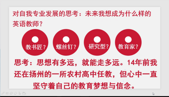 最后,刘老师和大家分享了成为一名研究型教师的意义。鼓励同学们把自己的声音带给更多的人,促进学生核心素养发展,成就赋权同行教师,对社会、对国家教育事业奉献自己的力量。