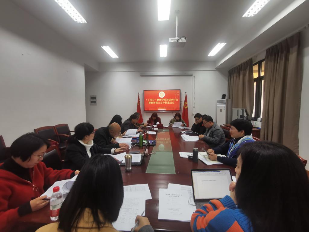 召开“十四五”翻译学科规划研讨会暨翻译硕士点申报推进会。会议由学院科研副院长郑淑贞主持。浙江文化“走出去”协同创新中心主任赵伐教授、翻译硕士培育点负责人蒙兴灿教授、其他专任教师及学院科研秘书等参加会议。