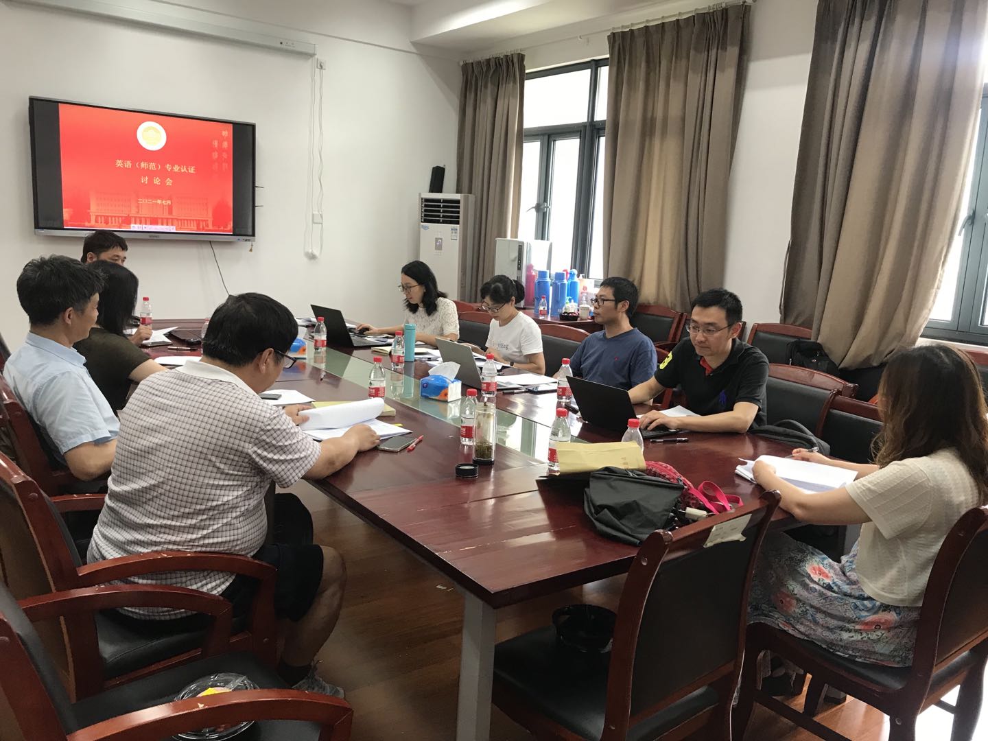 7月26日, 国产av 召开英语(师范)专业认证申请书撰写讨论会。学院党总支书记、副院长、英语系系主任参加了会议。会议还邀请了国产av 教务处、教学评估中心、教育学院的领导到场指导。