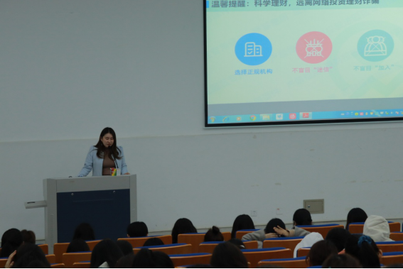 吴老师以幽默风趣的语言向同学们分享了许多发生在她身边甚至她亲身经历的理财诈骗事件,帮助大家深入了解常见的诈骗套路。她提到,预防网络诈骗需要个人对自身财产有较高的敏感度,不轻信网络上出现的低投入高收益理财、不盲目“迷信”以及不盲目“加入”,这看似简单实则不易。