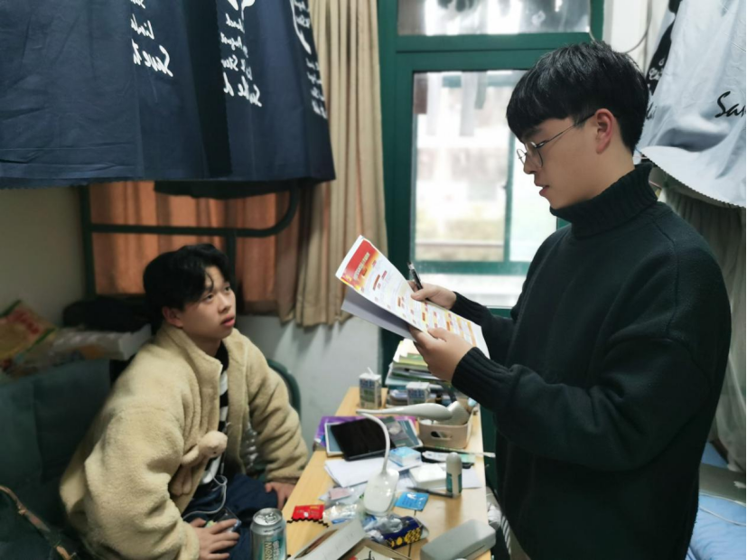 为进一步增强学生党员联系群众、服务群众的主动性,发挥学生党员、入党积极分子的先锋模范带头作用,帮助身边低年级同学们树立崇高理想信念,英文学院学生党支部开展党建进寝室专项活动。